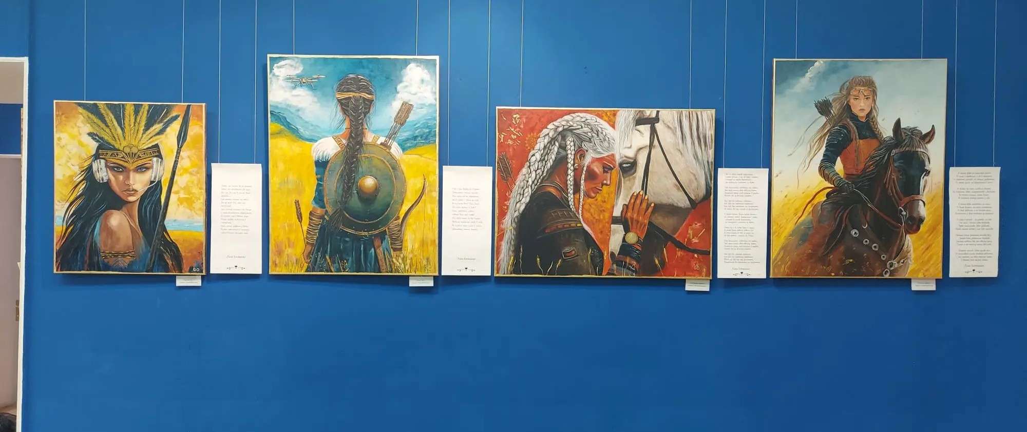 Саме з цього усвідомлення народилася картина «Праматір на зв’язку» — перша у серії «Українські амазонки-Косачки». Це данина пам’яті як давнім Косачкам, так і сучасним українським жінкам, які щодня відстоюють наші цінності. На полотні зображена молода Косачка, ватажок племені. Вона дивиться крізь тисячоліття, ніби знаючи щось, що ми забули. І що б не говорили, з якої б точки ви не дивились на неї, її очі завжди зустрічаються з вашими. Вона дивиться прямо в серце — тихо, але наполегливо.
