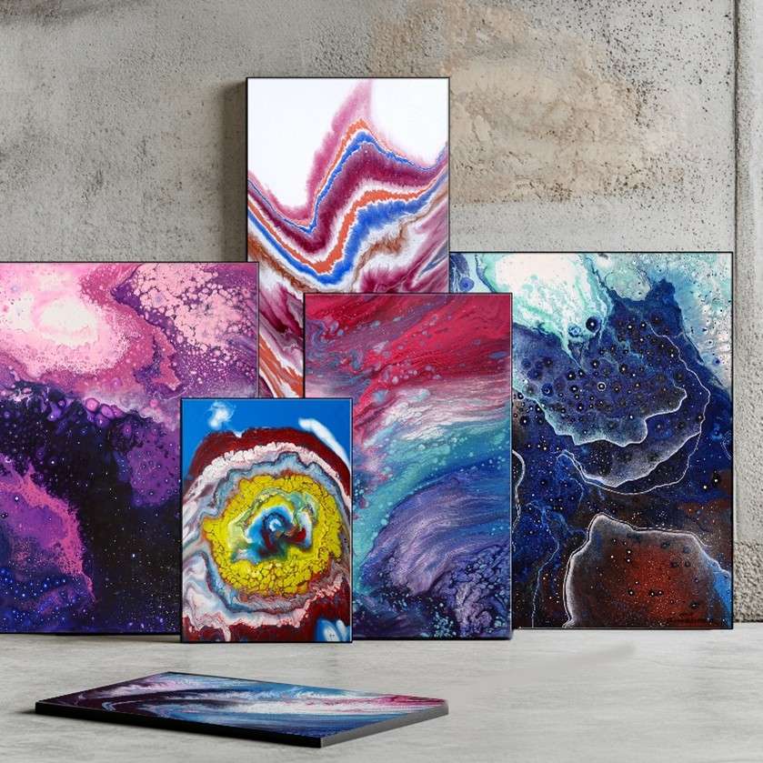 Я завжди любила малювати, але справжня пристрасть до мистецтва виникла з технікою fluid acrylic art. Вона дозволяє досліджувати магічний рух фарб і гнучку текстуру кольору, створюючи несподівані ефекти. Цю техніку вдало використовувати для космічних сюжетів. Перша персональна виставка відбулась у планетарії Харкова в 2019 році під назвою «Обрії нескінченості: Людина. Душа. Всесвіт».